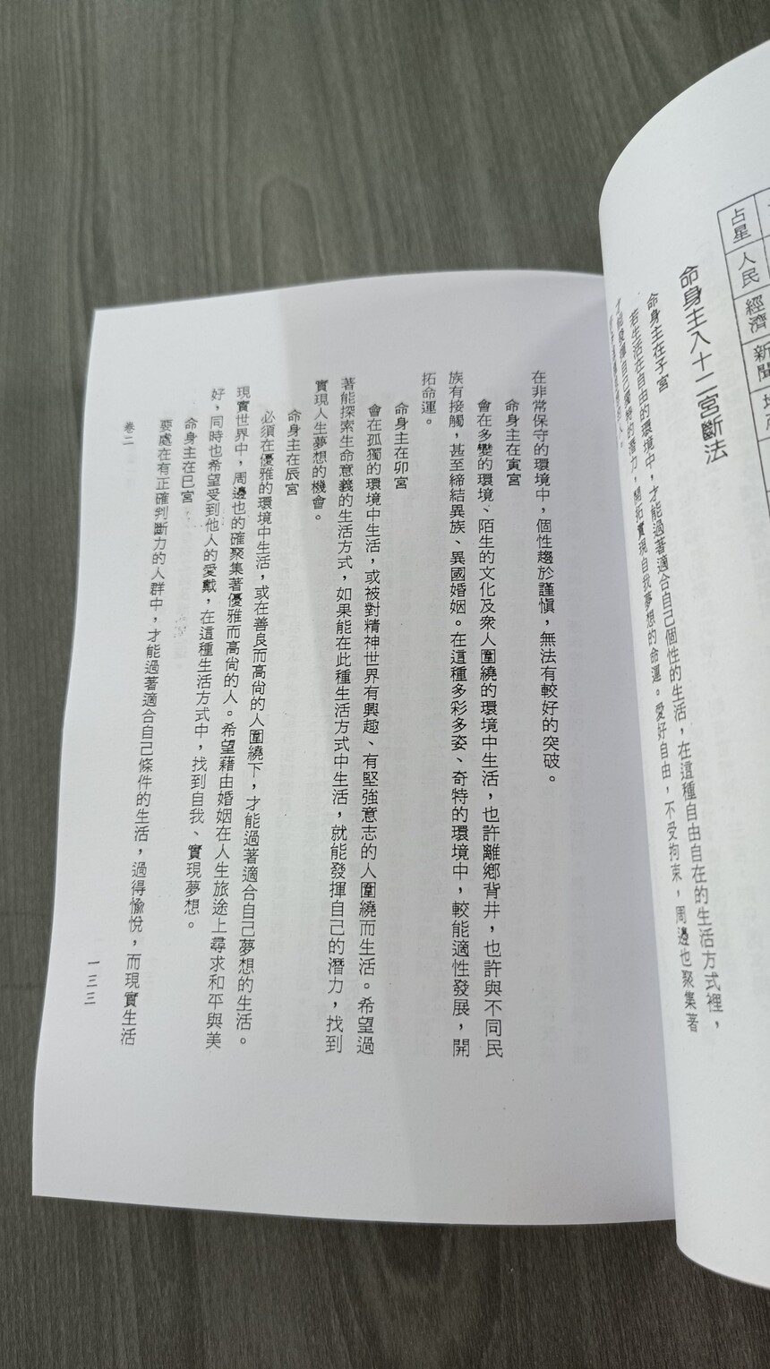 卷二 針對斗數具有爭議性的部分,予以追根溯源,配合實例證驗,其中又有闡秘、推衍的訣竅。