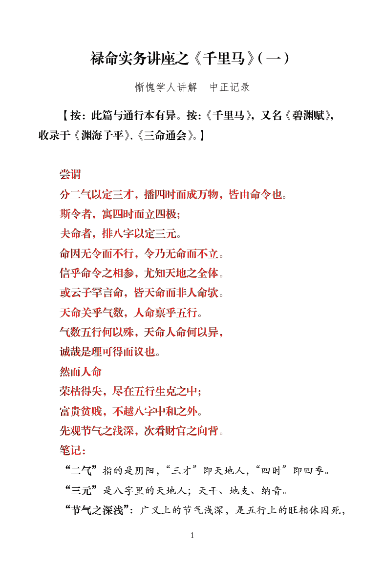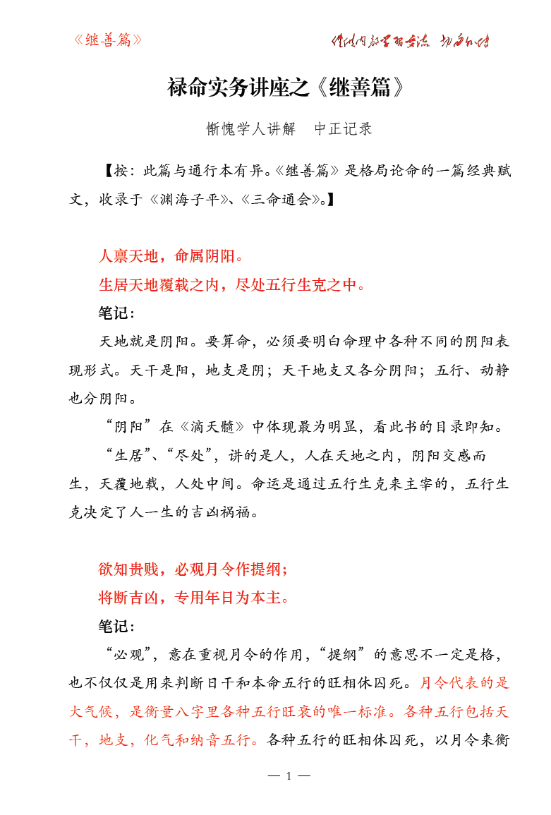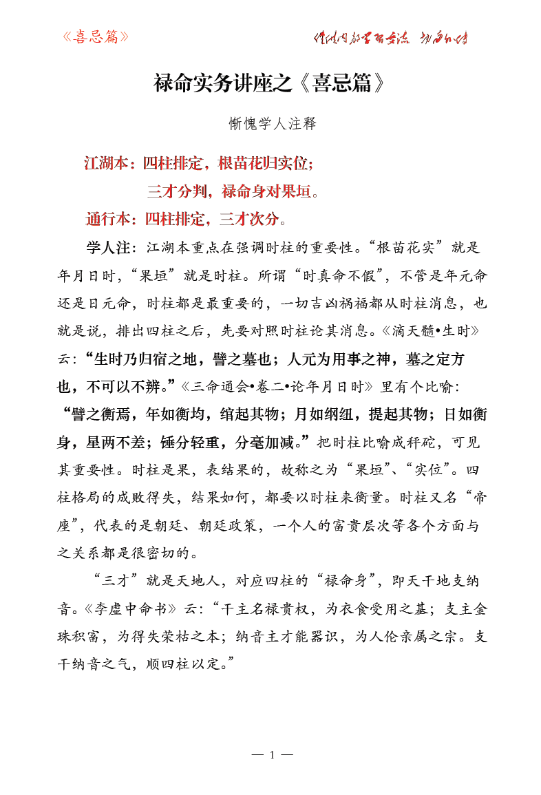 惭愧学人:禄命实务讲座之《继善篇》《千里马》《三车一览》《喜忌篇》 合集 黑白内页