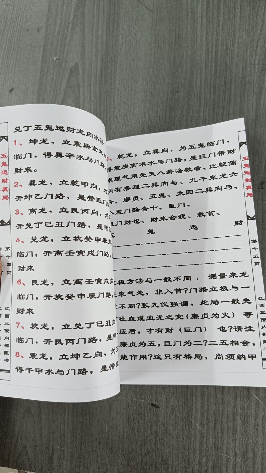 五鬼运财 江西三僚内部资料 彩色印刷 定制 彩色筒子页 手工线装